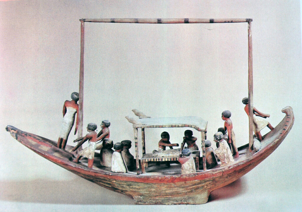 ( Modèle de barque trouvé dans une tombe égyptienne. Toute une cérémonie funéraire