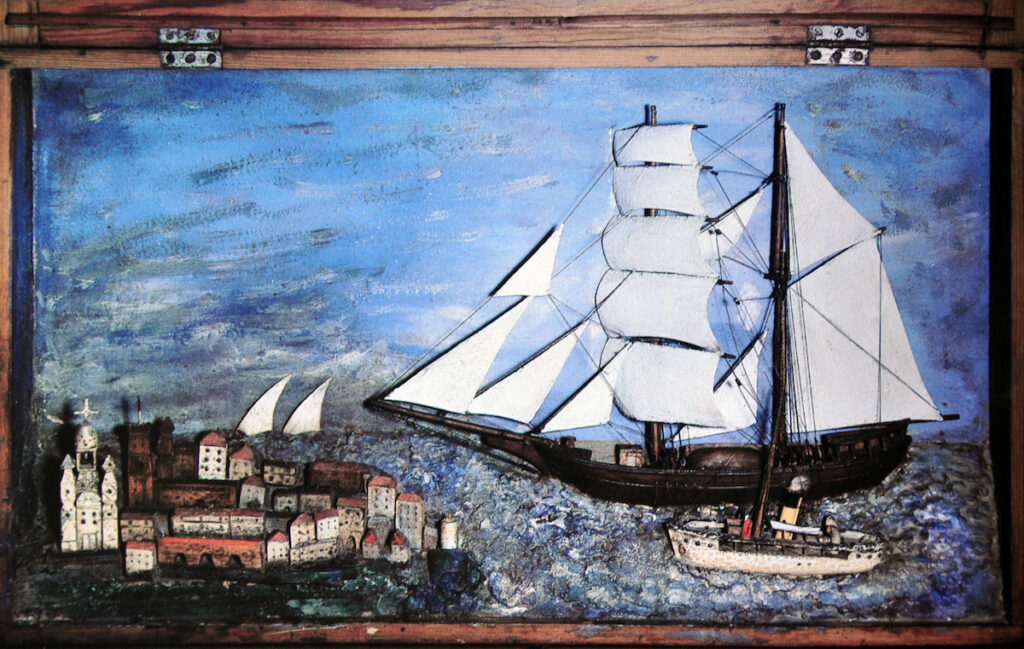 Sur la côté méditerranéenne des peintures souvent naïves, mais pleines de charme et de grandeur tragique, faisaient la plupart du temps office d’ex-voto. Plus rares, mais pas exceptionnels étaient les ex-voto de maquettes.